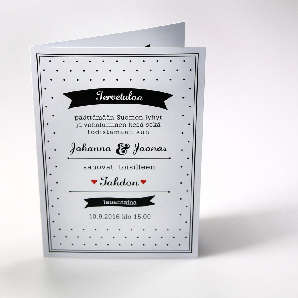Personoidun kutsun toteuttamiseen tarvitset vastaanottajien ajantasaiset yhteystiedot, selkeän kutsutekstin, oikein muotoillut logot ja kuvat sekä tarkan aikataulun. Painotalon asiantuntijat osaavat neuvoa sopivissa materiaalivalinnoissa ja painotekniikoissa, kun kerrot heille tapahtumasi luonteen ja tavoitellun vaikutelman.